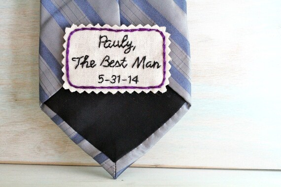 Embroidered Wedding Tie Patch Or Wedding Dress Label. Father of the Bride, Groom, Best Man. Linen Fabric. Wedding Handkerchief